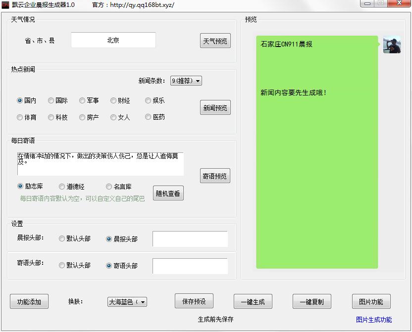 飘云企业晨报生成器 V1.0 绿色免费版