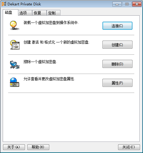 Dekart Private Disk是一款非常出色的虚拟磁盘加密软件,Dekart Private Disk官方版界面友好,功能强劲,能够保护虚拟磁盘不受病毒入侵,操作起来简单便捷,不熟悉的小伙伴看看就了解了。 基本简介 Dekart Private Disk是一个强大、实时、易用的虚拟磁盘加密软件,Dekart PrivateDisk 能在计算机上产生一个或几个虚拟盘。 每个虚拟盘里可以贮存很多文件和目录。这些文件会自动被实时加密。只有拥有正确的密码,才能读取这些文件,并自动实时解密。DekartPrivate Disk 使用美国政府标准加密算法AES 和 SHA-1 算法技术,可以隐藏运行,有快捷键可以紧急关闭。 软件特色 1.相比PGPDisk、BestCrypt等虚拟磁盘加密软件,Dekart Private Disk可以算是一个准绿色软件,不需要安装即可以使用,也少了PGPDisk 、BestCrypt 等软件一些不必要的功能。Dekart Private Disk 最大的优点就是界面简洁、功能合适、易于使用。 2.Dekart Private Disk是一个准绿色软件,不需要安装,只需要把本压缩包解压到某个文件夹里即可以使用。此特性特别适用于移动存储用户(相反,PGPDisk 、BestCrypt必须要安装后才可以使用),将本压缩包和映象文件拷贝到如移动硬盘上,可以很方便使用。 功能介绍 1.您可以在硬盘上建立无数个密盘,密盘名字任你改。 2.PrvDisk支持在移动硬盘,U盘上创建密盘,实现数据的移动加密。 3.Dekart Private Disk具有界面豪华、稳定易用、功能强大和兼容性好等特点。 4.可以直接往个人密盘里下载文件,随便编辑处理观看里面的文件。 5.别人无法打开,杀毒程序也无法访问,既方便又安全,真正的个人文件保险箱。 6.可以把空间提供盘上的文件或文件夹直接转移密盘内。用户只需将文件存入密盘,操作完后将密盘关闭,程序就会自动将密盘中的文件加密。 |