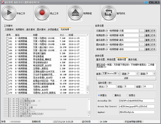 智动群剪官方版是一款非常实用的AI智能自动批量剪辑视频软件。拥有非常丰富的功能,支持AI智能配音、字幕、单素材和多素材混剪等多项操作功能,操作简单,可以批量剪辑,提高工作的效率。需要的快来下载。 软件功能 1、文案素材 视频中所需要表达的文字内容,软件根据文字自动生成配音,支持阿里云,腾讯云,百度云智能AI配音。 2、视频素材 视频素材用于智能混剪拼接,软件从素材中随机剪辑合成视频,支持单素材(比如电影),支持多素材混剪模式(比如娱乐新闻)。 3、音乐、图片素材 音乐素材作为视频的背景音乐,图片素材为视频中插入显示的图片,图片素材也可以转成视频素材。 软件特色 1、精确智能随机剪辑; 2、根据文案自动配音,支持阿里云,腾讯云,百度云; 3、支持在配音中加入开头,段落,结尾停顿时间; 4、根据文案生成字幕。所有AI配音都支持精准字幕; 5、自定义字幕样式,位置和格式; 6、自动加入背景音,并智能调节音量; 7、智动群剪最新版支持加入水印,设置水印图片,水印位置。软件智能调节水印大小; 8、支持裁剪视频画面; 9、智动群剪官方版支持横屏竖屏转换。并支持模糊填充,颜色填充,图片填充,三屏填充; 10、多项目模式,支持项目批量操作; 11、去水印功能; 12、减掉片头和片尾; 13、图片转视频,视频插入图片功能; 14、加入片头片尾功能; 15、一键定位水印,一键定位裁剪功能,支持定位时段; 16、支持多行字幕; 17、Nvidia显卡支持GPU硬件加速; 18、视频比特率设置; 19、以上功能都可自定义组合,一键完成所有操作。 |
