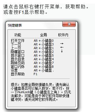 在主界面或设置界面按F1,可显示快捷键操作帮助。
