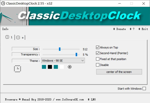 ClassicDesktopClock x32是款很好用的一款小工具。ClassicDesktopClock x32可以在电脑随便的放,并且还可以自己调制颜色还有大小,是款很经典的桌面时钟。 功能介绍 整体透明度,尺寸调整,以及不同时钟主题的选择,可用,并可定制。 根据个人需求和用户的想法,这款Windows桌面时钟将来会得到扩展。 享受这款漂亮的Windows桌面时钟吧。低于150 KB的非常小的软件,这不是硬盘上的空间浪费。 软件特色 ◆桌面上可自由选择的位置; ◆屏幕上的固定位置; ◆可选透明度; ◆可选秒针; ◆多个主题; ◆可更改尺寸; 其他规格: ◆低CPU使用率; ◆可选翻译功能; ◆便携式; ◆多语言; 更新日志 ?对经典桌面时钟和语言文件更新进行了一些调整和微调。 2.55版中的新功能// 2020年12月4日 模拟桌面时钟更新和改进。 新语言:菲律宾语和马来语。 |
