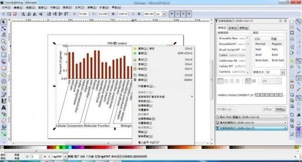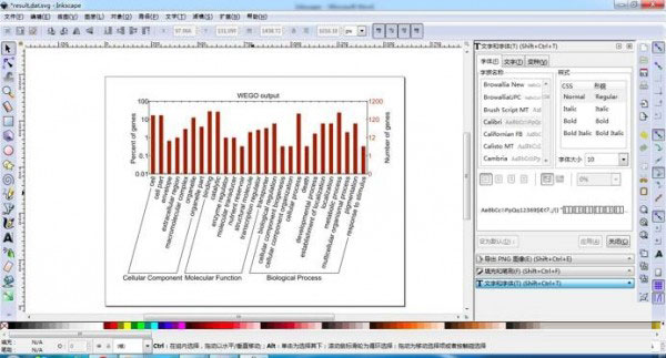4、删除冗余图像信息,使用工具 单击“Number of genes”和“WEGO output”,单击右键选择“删除”,接着框选图像右边的数字和标尺格以及图像上角的标尺格单击右键选择“删除”,结果如下图所示,此时图像显得简单直观: