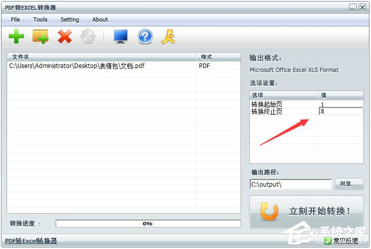 7、转换的页数在这里设置,可以设置起始页,也可以设置终止页,自己设置范围;