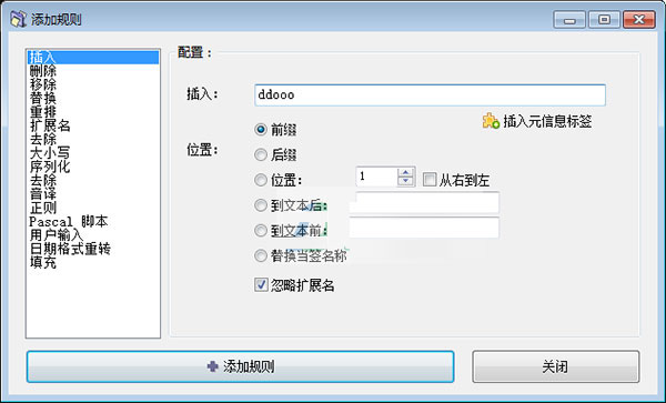 5、设置插入:ddooo 位置可以设置为前缀,后缀,替换当前名称等;