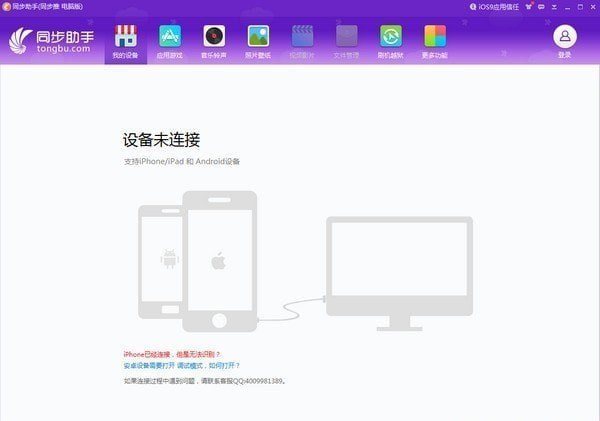 同步助手(同步推)官方安装版是一款免费的iPhone、iPad、安卓手机管理工具,同步助手功能强大,资源丰富,同步助手中拥有海量音乐资源可以随便下载,并且同步助手使用起来简单且方便。 软件特色 1、海量资源,你才是最自由的同客。 来自 Google 音乐和百度 音乐的无数音乐资源,下到你手软。来自 AppTrackr 和所有同客们分享的大量软件,肯定会有好惊喜。支持91手机助手下载的所有软件资源,肯定不浪费。支持手机安装 IPA 和 PXL,不够自己加。 2、方便又给力,做最in的同客。 支持接多台设备同时连,支持软件批量安装。支持快速简单的软件删除,解放你的手指。支持 PXL 格式软件的卸载,更加快速方便。支持 Google 、百度 音乐的快速搜索和下载。支持AppTrackr,支持软件分享,一键下载,绝对很给力。音乐封面获取,资料浏览,肯定非常in。 3、简单又易用,轻松不用教。 无需安装守护程序,直接连接,无障碍使用。无需越狱亦可使用,越狱不越狱由您选择(如果没有越狱,仅能安装正版软件)。无需同步,避免程序被 iTunes 误删,省心省力。无需同步,直接安装直接使用,快速又简单。 4、安全无守护,远离白苹果。 绝对不在手机中安装任何守护,安全无污染。最安全的软件安装方式,与 iTunes 保持一致,绝对不会白苹果。自动将 PXL 转换为标准的 IPA,目录不混乱,干净无残留。 软件功能 1、支持音乐管理、播放,动态歌词显示,专辑封面获取。 2、支持对本地音乐类型分析,健康度分析。 3、支持 AppTrackr.com 软件下载。 4、支持 google 音乐下载。 5、支持电台音乐播放。 6、支持所有 iPhone、iTouch、ipad,包括越狱和未越狱版本。 7、支持ipa、pxl格式软件安装、批量安装。支持正版ipa安装。 8、支持多设备同时连接。 9、支持iPhone信息查看,包括产地,出产日期,是否解锁等,支持在未激 活状态下查看BaseBand等信息。 更新日志 修复i0S13无法获取图片的问题。 修正其他问题和细节。 |