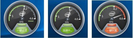 一键超频是一款非常好用的CPU超频软件,这款CPU超频软件支持英特尔第七代以上的CPU超频,支持Win10系统,用户安装该软件后,可以对CPU进行实时的一键超频,提高CPU的频率和整机性能。 使用方法 1、打开桌面的一键超频程序; 2、软件会显示未超频时的表盘界面,频率指针表示CPU的实时频率并动态摆动。绿色部分代表该CPU的默认频率范围,灰色部分代表超频后该CPU可到达的新增频率范围; 3、点击一键超频按钮,执行CPU超频操作,超频成功后,灰色部分会变成橙色,表示CPU能到达新增的频率范围。如下面图中所示,CPU 一键超频后频率指针可以从4.2G Hz摆动到4.5G Hz。点击一键恢复按钮,CPU 会恢复到超频前状态; 4、超频前 超频中 超频后; 5、鼠标移至表盘界面,显示最小化按钮,点击可将表盘最小化到托盘图标; 6、右键菜单:点击表盘右键或者托盘图标右键,弹出右键菜单; 7、通过勾选/不勾选显示悬浮窗,自由选择是否显示表盘; 8、设置,点击设置弹出设置界面,用户可根据需要自行选择设置中所列选项,然后保存生效; 9、通过点击一键超频/一键恢复可实现 CPU 一键超频/恢复功能。 更新日志 更新支持GTO的功能。 |