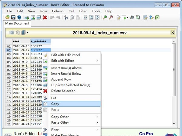 Rons CSV Editor最新版是实用的CSV文件编辑器。集合了丰富的编辑功能,可以立即编辑,查看和阅读,排序和清理以及转换所有数据。各种文件的编辑都可以轻松操作,然后导出为新格式,以多种方式编辑,清除和转换数据。 软件特色 增强的编辑功能 可以轻松地为包含选项卡或换行符或多单元更新的单元格激活编辑面板。 每行页面数窗口可用于编辑表单中的数据布局。 强大的编辑功能 工具箱是终极的清洁和转换工具,具有实时预览和搜索功能。 拆分和合并 行和列都可以拆分和合并,从而提供强大的重组和重复数据删除功能。 删除重复的行和空行 可以选择用于比较行 的列进行总体控制。 过滤和汇总 通过从表上的上下文菜单进行快速过滤访问,可以快速轻松地过滤,排序和汇总数据。 快速查找-一键式搜索整个文档。 视觉助手 单击自动宽度,自动高度行,快速缩放。 安装方法 1、下载并解压,双击 [RonsEditor_2018.03.29.1544_setup.exe] 安装软件。 2、进入主界面后先点击工具栏第一个打开文件图标,选择要编辑的CSV文件,点击打开。 3、打开成功后,上方会显示CSV的文件名,中间会显示CSV文件里面的全部数据。 4、选中对应的数据,点击鼠标右键,可以进行修改、复制、剪切、删除等等的操作。 5、修改完成后点击File菜单,点击Save保存或者Save As另存为即可。 |