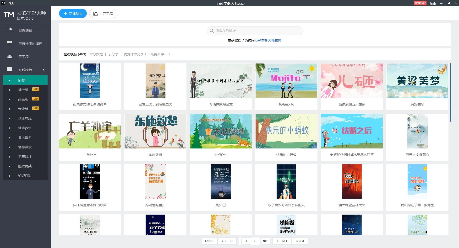 内置了海量精美模板,包含了各种类型,如幽默搞笑、销售口才、情感百科、健康养生等,一键套用。