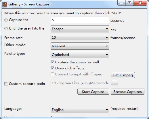Gifferly是一款便捷实用的Gif捕获与管理工具,能够对用户本地磁盘中的GIF文件进行捕获,并能够对其进行管理,同时可以在用户界面窗口下方的屏幕捕获到GIF文件,整个过程非常迅速,并且还为用户提供了大量的功能按钮,以及参数设定窗口! 软件功能 提供用于输出mp4的复选框,如果在路径中安装了此功能,则使用ffmpeg。 否则,该复选框将被禁用,Firefox使用正确的pix格式来显示视频,它比GIF更快,更好; 将所有视频生成移至线程,从而使UI操作更加流畅。 添加了获取FFmpeg按钮,可打开下载网页。 此版本已经把旧版本中的问题头解决了,修复了捕获多个MP4视频的问题。 优化了MP4视频的白色和黑色级别。 如果ffmpeg编码器发生故障,则可以更好地显示错误。 优化了在程序文件中安装时正确保存的选项。 软件特色 现在用户界面中增加了浏览捕获按钮。 通过使用其他八叉树实现改进了调色板生成步骤。 这样可以在最终输出中获得更好的颜色。 如果安装位置不可写,现在将退回至将输出写入〜/ Pictures。 在资源文件中添加了更多可见字符串以进行翻译。 使更多的字符串可翻译。 |