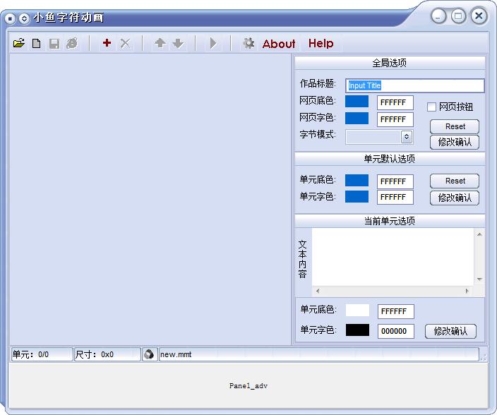 由于文本文件本身不具有颜色效果,因此当往动画文件中添加文本文件时,程序会为加入的文本单元添加底色和字色,用户可以自己定义该默认的颜色设置,通过在“单元默认选项”修改有关颜色设置,并点击“修改确认”按钮,有关设置将会保存在程序中。(注:不点击“修改确认”按钮,则“单元默认选项”中的有关改动不会生效保存,点击“reset”按钮,会把数据重新变为原来的数据。)