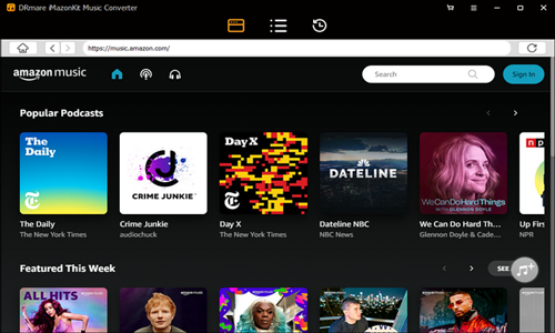 注意:您可以选择所需的Amazon Music播放列表,然后单击“转换”按钮以将其加载到DRmare转换窗口。加载后,DRmare程序将开始转换Amazon Music。同时,您可以返回亚马逊的主页以查找并添加更多歌曲以进行转换。