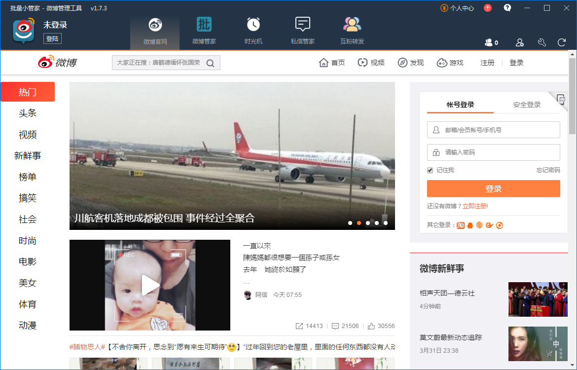 包括国家机构、机关单位、知名媒体、艺人、行业名人在内的超过2000万人都在使用,玩转微博不可缺少的小管家,安全可靠,值得信赖。