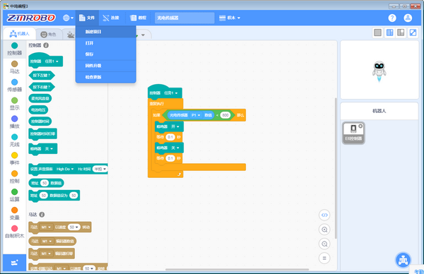 中鸣编程官方版是一款为儿童打造的图像编程软件,该软件践行AI教育理念,通过开源硬件接入,利用虚拟现实效果,引导学生自主去学习,开发想象力的同时培养孩子的编程思维。软件支持一键切换至代码模式,可通过代码管理器查看代码,让孩子学习代码变得更加简单。 软件介绍 中鸣编程官方版(ZMROBO)是一款出色的图像编程软件,适合初学编程的儿童使用,培养孩子的编程兴趣,软件专门用于设计机器人动作,软件内置了教学方案,手把手教学孩子编程,非常方便。 软件特色 软硬件结合创造神奇 践行AI教育理念,通过开源硬件接入,实现软硬件结合,联合编程、相互控制的虚拟现实效果,引导学生基于现实去创造。目前已接入u Kit Explore、悟空机器人、Micro:Bit、Arduino。 代码模式切换 编程能力升级 支持一键切换至代码模式,可通过代码管理器查看代码,控制已连接的硬件,还可将代码烧录至硬件,实现更为灵活的DIY脱机控制。 3D虚拟搭建 提供官方uK it Explore模型,3D搭建指导,可360度查看拼搭细节,迅速搭建属于自己的模型。 使用方法 1、下载打开软件,点击说明即可手把手学习编程技巧。 2、学会编程技巧后可以新建项目进行编程。 更新日志 添加了4个传感器模块: “气压检测”、“温湿度检测”、“磁场强度和方向检测”、“扫描二维码”。 |