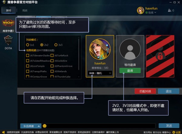 魔兽争霸官方对战平台官方安装版是由暴雪唯一授权的魔兽对战平台,魔兽争霸官方对战平台有多种对战模式,并且在平台正式运营之后推出了天梯模式,平台还自带队友语音模式,使得组队时队友交流变得更加便捷。 功能特色 暴雪官方唯一指定平台。 无广告快速对战。 WarIII经典对战唤醒。 多人OB万人同时观看。 使用指南 改键工具/语音设置。 改键在保存之后生效。 使用平台自带小队语音功能,使队友之间的交流变得更加便捷。 选择模式 匹配对战是一个悠闲娱乐的模式,不影响赛季等级。在匹配模式中你能收获体现某个种族熟练度的种族经验与体现Dota某个英雄熟练度的英雄经验。 在房间列表模式中,你可以添加AI或者与好友约战。但在房间列表模式中,你无法得到任何收益。 赛季模式按照官方赛季机制,定期更新,赛季等级是玩家实力的体现,每个赛季的优胜者还将获得线下赛的参赛资格。在赛季模式中你还能收获WarIII的种族经验与Dota的英雄经验。目前暂未开放。 选择模式 - WarIII匹配对战。 选择模式 - WarIII房间模式。 在房间列表中,既可以双击进入已有房间,也可以创建一个新房间。 在准备之前点击空楼层可以完成位置交换,右键其他玩家可以申请交换位置。 选择模式 - WarIII游戏内。 |