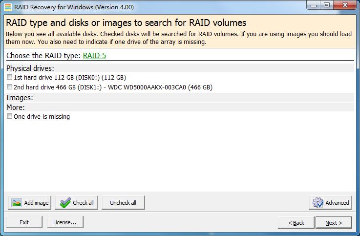 如果您要恢复RAID-5,则可以连接一个小于该RAID中的驱动器总数的驱动器。