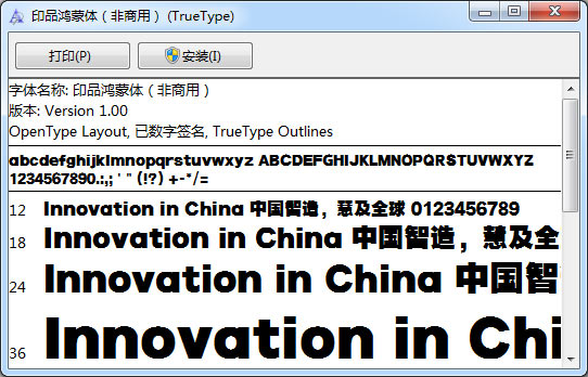 印品鸿蒙体字体是由印品字库推出的一款字体,是一款非常好看的字体。印品鸿蒙体字体字体美观,工工整整,字型饱满,适合广告设计、书法字帖、文本标题等等场景。如果您喜欢这款字体的话,就请到本站来下载吧。 安装方法 解压缩文件,得到一个ttf文件。注意,这里必须是已经解压缩开的TTF文件; 复制这个文件,并粘贴到此文件夹“C:WINDOWSFonts”下面;如果你找不到这个文件夹,没有关系,那很可能是系统设置了隐藏,直接复制路径“C:WINDOWSFonts”并回车就来到了这个目录; 复制粘贴TFF文件,到这个目录“C:WINDOWSFonts”下面,然后双击打开这个文件,就自动开始安装啦! 然后双击打开,安装好后,会有一个界面提示,点击“完成”。 好了,我们看看效果。打开Word看看,是否有了这种字体; 能看到的话,字体就安装成功啦! 常见问题 1、为什么在安装时会出现“文件损坏”? 答:这是因为字库与您的系统产生冲突(特别是xp系统,因为有很多字体以前都是在win98或更早的版本下开发的。) 2、为什么安装完字体后我在使用时找不到? 答:有些字体:例如华康系列的。他们在列表显示为他的相关拼音代码,您可以在下载回来时双击字体可以看到这个字体的名字是什么。然后在选择使用这个字体时,就请选他的拼音字,就是您要的字体了。 3、为什么有些字体的字打不出来? 答:有些字库必须要在繁体输入的情况下才能打出来的。(例如金梅字库等),如果使用繁体输入法输入的文字依然无法出来,可能是字体的字库不全,是没办法打字这个字的。 |