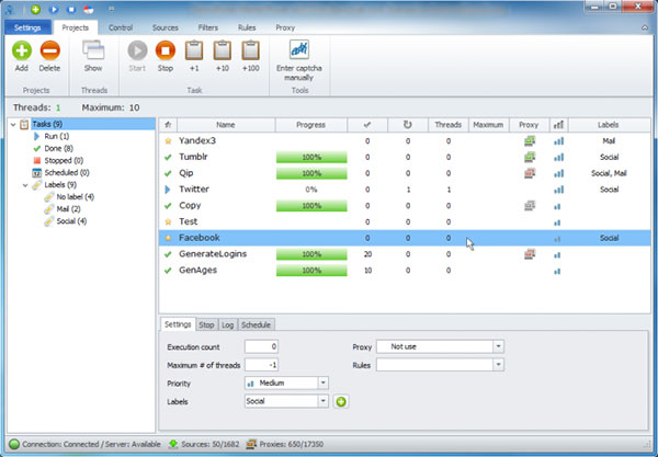 ZennoPoster可以同时在数十个线程和数百个线程中执行项目。