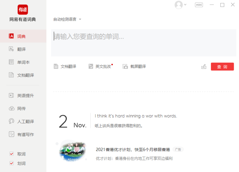 网易有道词典是一款翻译功能非常强大的翻译软件,用户如果碰到不懂的词汇可以通过软件直接进行翻译并且还提供纯正的读音及详细的注释,也能通过软件进行语言的学习,功能十分强大,如果有需要的用户就快来下载吧。 软件特色 不需打开应用,点击顶部图标即可实现快捷窗口查词。 快捷开启取词划词弹窗,指哪儿翻哪儿。 新增单词本功能,登录后多端同步,记忆不再碎片化。 多处收藏功能设置,方便用户不同的操作习惯。 全新界面和logo,不只是美了一点。 软件功能 独创的"网络释义"技术 海量例句一键查询 实现Chrome浏览器下屏幕取词功能 完整收录多部专业权威词典 快速准确的中英日韩法五国语言全文翻译 支持多浏览器环境 一键换肤 网络释义自动发音 手写输入 |