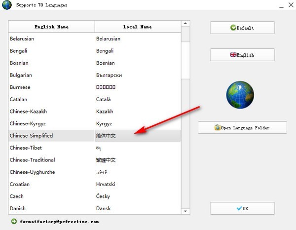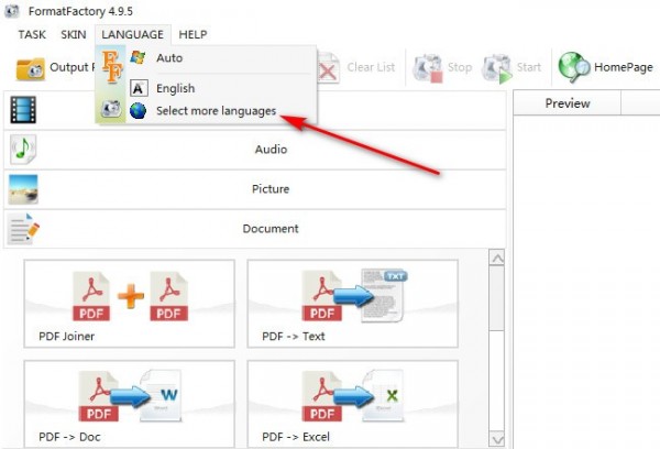 FormatFactory格式工厂是一款好用的多媒体格式转换软件,使用该软件可以帮助用户进行多媒体文件的格式转换,转换速度非常快,轻松转换一切你想要的格式,支持转到MP4/3GP/MPG/AVI/WMV/FLV/SWF,有需要的快来下载体验吧。 软件功能 1、支持几乎所有类型多媒体格式到常用的几种格式。 2、转换过程中可以修复某些损坏的视频文件。 3、多媒体文件减肥。 4、支持iPhone/iPod/PSP等多媒体指定格式。 5、转换图片文件支持缩放,旋转,水印等功能。 6、DVD视频抓取功能,轻松备份DVD到本地硬盘。 软件特色 1、没有修改原程序,保证安全、稳定,原汁原味。 2、默认关闭了自动检测更新,让版本更新完全掌握在你手中。 3、默认不安装快捷方式到右键菜单。 4、兼容安装版,你可以在绿色版和安装版之间切换使用。 使用教程 设置中文方法 运行软件后,点击上方的LANGUAGE,再点击select more languages。 选择简体中文,并确认。 现在就是熟悉的中文界面了。 |