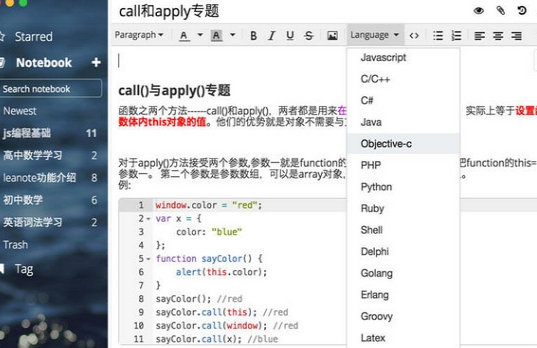 Leanote蚂蚁笔记是一款阅读笔记记录软件,当用户在学习过程中遇到想记录的笔记可以通过软件进行直接记录,软件同时也能帮助用户对笔记进行注释,可以有效的帮助用户提高学习效率,十分方便,如果有需要的用户就快来下载吧。 软件特点 1、支持 vim&emacs 输入。 2、微信保存。蚂蚁笔记微信版支持语音,图片输入。 3、丰富的企业级功能(云协作版)。蚂蚁笔记提供完整的团队权限管理,甚至支持 Docker,私有云部署。 功能介绍 蚂蚁笔记微信版全新上线 微信扫一扫关注"Leanote蚂蚁笔记"公众号。 随时记录,方便分享 支持语音,图片输入,随时用微信记录身边的一切。 精华知识,一键变博客 多款博客主题供选择,可轻松自定义定制主题。 代码高亮 涵盖所有主流语言的代码高亮,随心所欲在Leanote里写代码,记知识。 写作模式&预览模式 让您静心写作,免受打扰。 全屏预览,开启使用笔记演讲或分享的时代。 Markdown 编辑器 实时同步预览,你只需使用键盘专注于书写文本内容,就可以生成印刷级的排版格式。 专业数学公式编辑 现在不只有Word和Latex能编辑数学公式,专为教育人群打造。 |