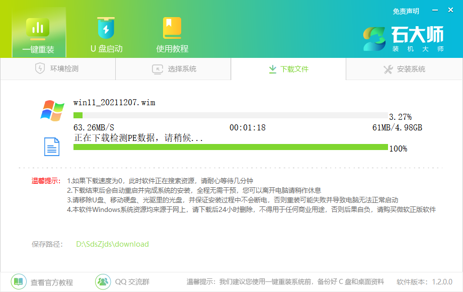 石大师装机软件是一款专为新手小白打造的系统重装工具,功能强大,可以帮助没有任何装机经验的用户进行操作,操作简单易上手,真正实现一键快速重装,安全稳定好用,不用担心问题,引导操作,步骤简单,有需要的用户快来下载体验吧。 软件特色 1、石大师装机大师官方版一键重装,方便快捷,新手小白也可轻松上手。 2、U盘启动,制作U盘启动工具,支持多种安装方式。 3、引导操作,步骤简单。 4、支持MAC苹果电脑,兼容性好。 5、多年品牌更加可靠。 软件功能 【一键操作】 无需光驱,无需U盘,无需技术,鼠标单击,即可完成系统重装。 【系统纯净】 智能检测当前电脑配置信息,自动分析适合电脑配置的最佳重装系统 版本,不强制安装,保证系统可运行。 【人性化设计】 支持系统备份还原,并在重装过程中提供电脑联系人与文件资料的备份 操作,确保重要资料的完整、不丢失。 【系统选择】 内置Win7(32位/64位)、Win8(32位/64位)、Win10(32位/64位)、Win11供用户选择安装,提高了重装系统的可选择性和灵活性。 更新日志 1、修复2.0盘制作U盘不拷贝系统。 2、修复PE下极小部分还原分区非正常结束。 |