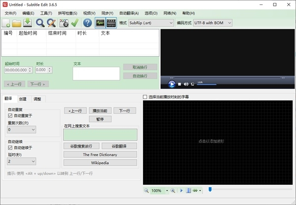 Subtitle Edit是一款免费的开源字幕制作软件,支持多种字符编码和字幕格式,用户可以根据自己的需求对相应的视频进行字幕制作,支持错误检查、合并、分割等操作,感兴趣的用户快来下载吧。 软件特色 – 创建/调整/同步/翻译字幕行。 – 支持在 SubRib、MicroDVD、Advanced Sub Station Alpha、Sub Station Alpha、D-Cinema、SAMI、youtube sbv 等之间进行转换(200+ 不同的格式)。 – 酷音频可视化控制 – 可以显示波形或频谱图。 – 视频播放器使用 DirectShow、VLC 媒体播放器或 MPlayer。 – 视觉同步/调整字幕(开始/结束位置和速度)。 – 通过 Google 翻译自动翻译。 – 从(已解密)DVD 中翻录字幕。 – 导入 OCR VobSub sub/idx 二进制字幕。 – 导入 OCR 蓝光 .sup 文件 – BD 支持读取基于 java 代码从 BDSup2Sub 由 0xdeadbeef)。 – 可打开嵌入 matroska 文件的字幕。 – 可打开嵌入 mp4/mv4 文件的字幕(文本、隐藏式字幕、vobsub)。 – 可打开嵌入 divx/avi 文件的 OCR XSub 字幕。 – 可打开嵌入 .ts(传输流)文件的 OCR DVB 字幕。 – 可打开嵌入.m2ts(传输流)文件的 OCR 蓝光字幕。 – 可读取和写入 UTF-8 和其它 Unicode 文件和 ANSI(支持计算机上的所有语言/编码)。 – 同步:显示早/晚文本 + 点同步 + 通过其它字幕同步。 – 合并/拆分字幕。 – 调整显示时间。 – 修复常见错误向导。 – 通过 Open Office 词典/NHunspell 进行拼写检查(许多字典可用)。 – 移除听到的受损文本(HI)。 – 重新编号。 – 内置瑞典语到丹麦语翻译(通过多翻译在线)。 – 效果:打字机和卡拉 OK。 – 历史/撤消管理器(撤消=Ctrl+z、重做=Ctrl+y)。 – 比较字幕。 – 多重搜索和替换。 – 更改大小写使用名称词典。 – 合并短行/拆分长行。 – 导出到 PNG 图像(+bdn xml)、Adobe Encore FAB 图像脚本、VobSub、Blu-ray sup、EBU stl、PAC 和纯文本。 更新日志 1、修复已知bug。 2、优化操作体验。 |