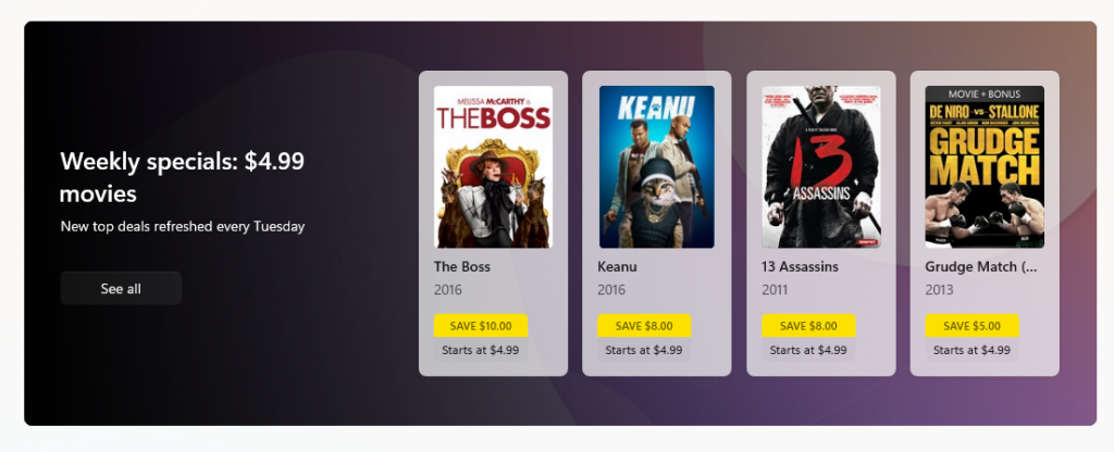更新了 Microsoft Store 中的定价设计。