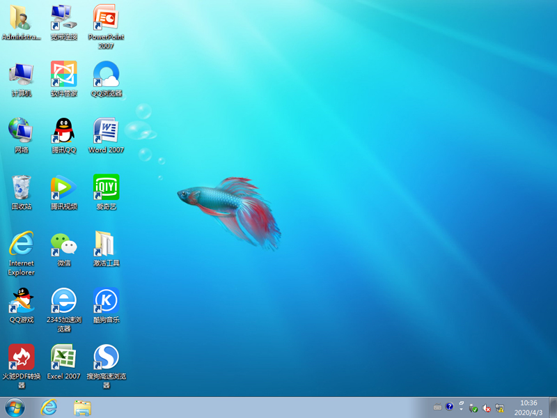 * 办公套件采用的是精简版Office2007,集成Office补丁至2020.04(可通过微软漏洞扫描)