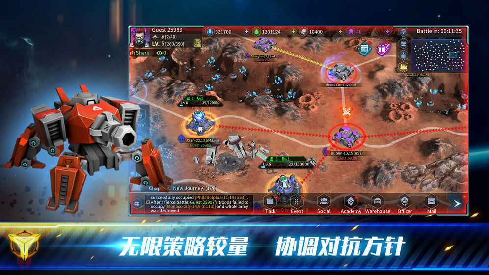 殖民冲突高级战争是款未来科幻题材的RTS手游。在未来资源愈发稀缺珍贵,各大势力大打出手,你将会和其他玩家一道或联合或对抗,击溃敌人,不断的扩展势力殖民地,在这场资源争霸战中夺得胜利。 【游戏介绍】 殖民冲突高级战争是一款极具科幻元素的RTS策略手游,官方制作组以极具细腻的场景风格和硬边模型的塑造单位为我们开启了一场专属于未来战争的狂欢。玩家将会在游戏中体验到快节奏的对局模式,全球服务器共通的机制让你能够迎战全球各路敌手,开放式的战场之上战局瞬息万变,唯有利用好资源,根据不同情况调整战略部署方能成为战争之王。 【游戏亮点】 1、由科幻迷开发,为科幻迷量身打造的新式SLG。踏上浩渺银河征程。 2、快速匹配随机对手随机地图,保证你每一局都有全新的游戏体验。 3、丰富的策略选择,或袭扰,或深入,或逐步蚕食,或全力速攻,任你选择。 4、精心设计的多样兵种供你差遣,为你的种种战术和计策提供配合。 小编推荐:这是个宏大的战略策划。而你将作为每个战役中的一员,拼尽全力,充分搭配阵容,思考战术策略,不断赢得胜利。这一个个小胜利如雪球一般,越滚越大,最后形成一股无法阻挡的势力,以摧枯拉朽之势席卷大陆,奠定最后的胜利。 |