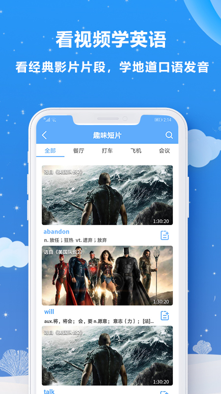 趣V英语app不仅可以帮助你有效提高学习能力,还可以为你提供所有教学内容的自由选择。你只需要根据自己的学习模式做出相关选择,软件里每天都会更新新的教学资源供你学习。 《趣V英语app》 软件亮点: 1.大量精选的短片按照七个场景进行分类展示,每个视频都精心配备了关键词和实时字幕。所有资源完全免费,易学,无负担。 2.零碎时间看精彩片段,培养语言意识,增加词汇量,提高口语。告别枯燥的死记硬背。 3.每部短片时长1-2分钟,支持屏幕选择、及时翻译、单词和句子循环播放、中英文字幕可选切换。根据你的英语水平,你可以根据需要学习。 4.提供四种特殊的练习方法。可以结合专业词汇或者词汇书上的生词,轻松实现和外国人交流的梦想。 《趣V英语app》 软件特色: 1.另外,视频还支持单词和单句的循环播放,可以随意切换中英文字幕,可以根据需要学习。 2.支持中英文模糊搜索,支持单词和单句搜索;输入后对反馈词进行分析、翻译和推荐,方便快捷。 3.选择英文意思,选择中文单词,填空,听辨意思。可以巩固对词汇或《我的单词书》中所有单词的学习,专业高效。 4.成千上万的人基于大数据为你提供最适合的日常生词和视频剪辑。 《趣V英语app》 小编点评: 【a】可供你选择的学习课程太多,软件中超级方便的搜索模式让你更准确的找到自己想要的学习资料,让你快速进入自己的学习环境。 |