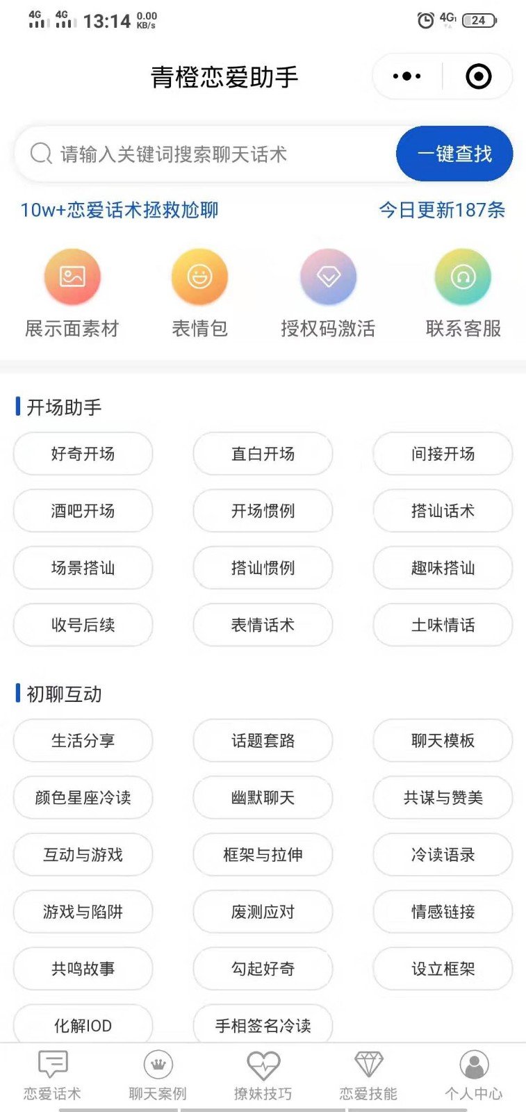 青橙恋爱助手爱情之路会帮你走向成功。有泡妞的套路情话,也有回话。直男肯定有聊天神器。平台包括情感社区,实景教学,牵手恋爱指导,摆脱沉默氛围! 青橙恋爱助手功能 1.很多聊天技巧都是免费使用的,几乎各种场合都能找到聊天技巧。 2.教你携手坠入爱河,确保彼此相爱。 3.有各种各样的情话供大家选择使用,只要你有兴趣。 青橙恋爱助手优势 交心聊天:善意测试,引导追求,聊天交流,高价值写照,封杀爱情. 建立情绪:服从测试、角色扮演、爱情调情和感人的话语. 青橙恋爱助手特色 1.开业助理:好奇开业,直白开业,间接开业,酒吧开业,开业实习. 2.初始聊天互动:生活分享、话题套路、聊天模板、幽默聊天、串供、赞. 3.给人安全感:情绪波动,讲故事,搞笑,自然. 青橙恋爱助手亮点 给你提供一个精彩的回复,高冷女神也会被你所左右; 它让你轻松地与女神聊天,轻松地捕捉女神; 青橙恋爱助手测评 青橙恋爱助手学习聊天技巧,提高情商! |