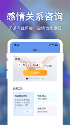 情感咨询一点通是一款专门为用户解决情感问题而设计的app,为你提供婚姻恢复.分手恢复.第三者分离.恋爱指导.家庭关系修复.个人成长等各种情感婚姻问题的一站式咨询服务。帮助你重获幸福。 情感咨询一点通说明 1.【情感】:爱情救赎.出轨.追男/女朋友.异地/异地恋爱.摆脱单身的技巧.感情褪色.毕业分手等。 2.【婚姻】:配偶变心.感情稀释.经济纠纷.亲密关系.婆媳关系.家暴.育儿.闪婚后悔等。 3.【心理学】:抑郁症.焦虑症.强迫症.妄想障碍.偏执障碍.社交恐惧症.多重人格.自闭症.人格障碍.性心理障碍等。 情感咨询一点通优势 1.【服务】首页新增服务入口,快捷直接,恋爱婚姻家庭所有问题都能轻松解决! 2.【私聊】与情感专家一对一私聊,倾诉烦恼,安全保密! 3.【专家】增加专家展入口,守护身边的情感服务专家! 情感咨询一点通特色 1.一对一即时咨询,3万听众,24小时在线,想聊就聊。 2.无需注册,匿名聊天,隐私更安全。 3.求助广场,接听每一个电话,一键聊天,快速匹配。 情感咨询一点通亮点 1.【恋爱约会技巧】全方位教授恋爱技巧,帮助摆脱订单 2.【婚姻管理干货】海量干货文章教你婚姻管理 3.【感情关系咨询】不用再见面就可以马上拥有 4.【消除婚姻障碍】专业导师帮你应对婚姻闯入者 情感咨询一点通评测 情感咨询一点通致力于提高全民的家庭幸福水平。通过线上线下相结合的创新模式,使情感咨询服务触手可及,帮助用户重获快乐。 |