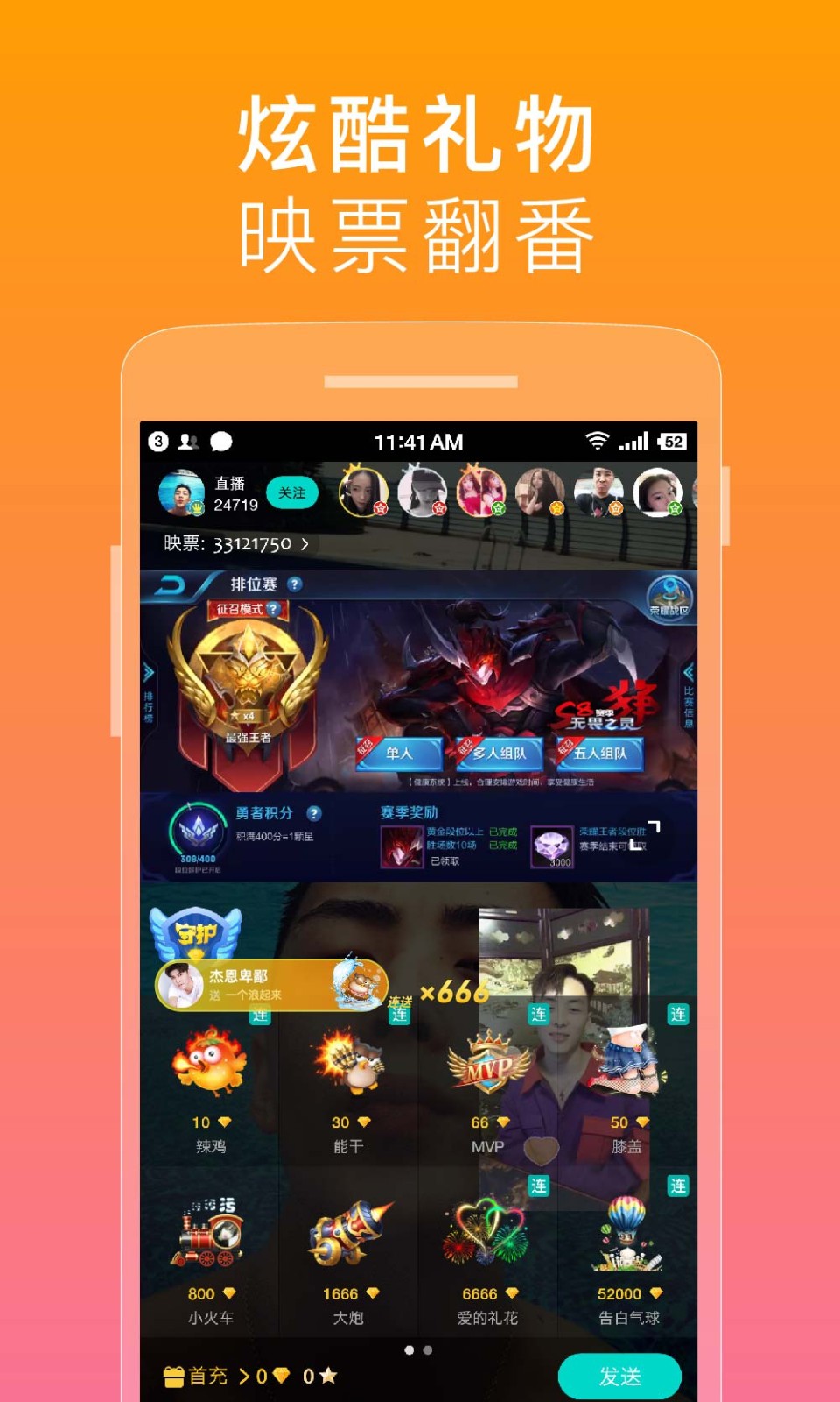 映客游戏app精心打造了众多优秀的内容频道,不断为您带来各种精彩的游戏动态和视频,是一个非常受欢迎的游戏直播平台。在app中,你可以享受观看各种热门游戏的直播内容,与主播互动,获得上车的机会。来试试吧! 软件功能 1.为大家打造各种节目版块,涵盖目前各种热门游戏,让大家享受精彩的节目内容,享受其中的乐趣 2.王者荣耀、和平精英、英雄联盟、第五人格等手游和终端游戏都包含在内,精彩纷呈 3.双屏直播功能,可以同时观看游戏操作和主播画面,享受各种精彩、多彩和期待 软件特色 1.流行的主播有很多,既有面值,又有实力,还有运营,能给大家带来精彩的运营展示,给大家带来乐趣 2.在这里,你不仅可以观看直播和主播互动,还可以赢得各种机会,用自己喜欢的主播开黑点,开黑 3.海量礼物特效,你可以为主播选择你喜欢的礼物,表达你的支持,增加主播的人气 |