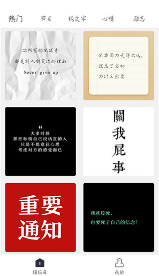 文字控是一个主题美化工具,提供文字壁纸。有很多漂亮的壁纸,你也可以自己制作,做出自己想要的效果。喜欢文字壁纸的朋友可以下载文字控APP,自己制作文字壁纸。这里提供了大量的文字和图片模板,每一个都很有特色,背景不同,排版方式也不同。甚至字体都不一样,很多都充满了艺术感,可以随意修改图片上的文字。日常温馨话语,原创美文阅读,美图欣赏,社区交流,朋友聊天等服务,对阅读产品感兴趣。有几十个不同风格的模板,让你用手机轻松制作各种漂亮的文字、图片、贺卡,也可以直接在模板上更改字体,非常方便。小编把你带到广告区,这样你就可以避免被广告打扰! 软件功能 1.主页: 每天一句暖心的话,不是悲伤,就是美好,不是现实,就是深刻。同时,仔细搭配图片,这样你就可以沉浸在文字控的文字中 2.正方形: 不同的话题,不同的圈子,在这里,都是优雅的爱写作的人,在这里遇到志同道合的人。 3.阅读: 我们每天为你精选三篇美文和一首好诗,零零碎碎地读完真正有价值的张文,用细微的方式让你成为更好的人。 4.摘要: 读万卷书,行万里路。如果我们没有时间阅读大量的书籍,我们可以阅读漂亮的书籍摘要。在这里,你可能会遇到你喜欢的句子。 每一个细节都值得我们关注。努力打造高品质的文艺产品,让自己遇见,更好的自己。文字控,我们都是一家人。 软件特色 1.各种文字图片免费下载,界面清爽无任何广告; 2.图片按不同类型分类,如节日、纯文字、心情、励志等; 3.每张图片上的文字都可以修改,想加什么都可以; 4.制作精美的文字图片很容易,模板可以随便使用,几秒钟就可以完成。 软件亮点 1.虽然提供的模板不多,但每一个都很有特色; 2.有纯文本的模板和有图片的模板,每一个的布局模式都是一样的; 3.图片制作完成后,直接保存或分享。玩法很简单。 更新日志 1.优化界面设计,修复所有已知错误。 2.添加用户提交模块,给广大热爱文学的朋友一个舞台。 3.风格和设计都被美化了,更强调文学氛围。 |