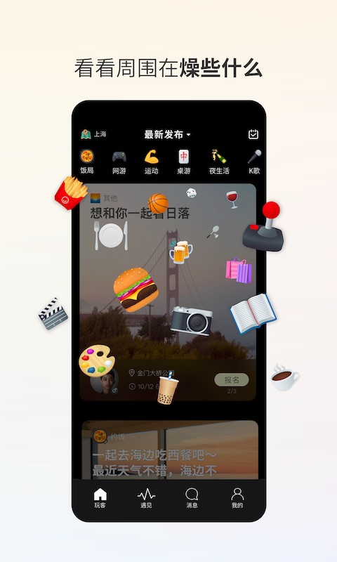 玩家,一个24小时在线陪伴的暖心平台,通过安全、快捷、方便的在线匹配,缓解日常生活压力。 玩客(交友社区)软件亮点