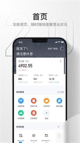 首页:全新首页,随时随地查看业务状态 业务数据:各种业务数据的统计和分析 功能管理:全新的功能模块,满足各种场景 店铺管理:全新的个人店铺管理 软件优势