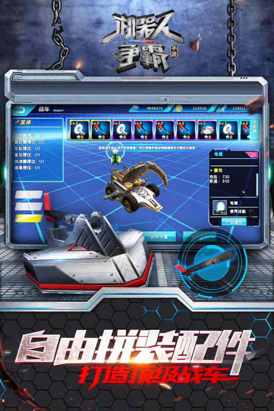 唯一同名综艺节目正版授权,爱奇艺第一款机甲格斗手游《机器人争霸》上线!自己组装,打造顶级机器人战车,无限制战斗3分钟,还原最正宗的钢铁竞技场,冲撞分裂对手!有很多方法可以探索,比如培养人形机甲,突破习俗等等。没有战斗的生活和咸鱼有什么区别! 机器人争霸最新版本介绍
