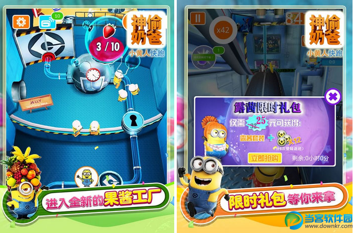 3、游戏中玩家会看见很多跟自己一样的小黄人在路上捣乱,这时候你需要做的就是用你的速度和力量将他们全部撞开来获得“卑鄙奖励”,从而获得更好地成绩。 游戏内购修改,直接点击购买即可,联通卡测试无任何问题,建议飞行模式内购。Gru(犀利哥/格鲁)忠心耿耿又喜欢胡言乱语的Minion(迷你兵团/小小兵),准备在 Despicable Me: Minion Rush 中面对最残酷的挑战。玩家必须扮演其中一个Minion(迷你兵团/小小兵),与其他人争跑,努力获得超级坏蛋Gru(犀利哥/格鲁)(前老大?)的赏识!使出浑身解数,跑,跳跃、飞翔、闪躲、耍坏、收集香蕉,打倒坏蛋,争夺年度最佳Minion(迷你兵团/小小兵)的头衔! 更新日志 |