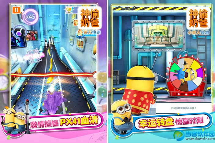 小黄人快跑修改版无限金币版是一款典型的跑酷类游戏,由广受欢迎的人气角色“小黄人”担任主角,本作采用了和《会说话的汤姆猫》一样的设定,你只要触摸小胶囊身体的各个部位,它就会做出各种不同的反应,来逗你开心。这种傻愣愣的小黄人总会在冒险中带来笑料。本作采用了和《会说话的汤姆猫》一样的设定,你只要触摸小胶囊身体的各个部位,它就会做出各种不同的反应,来逗你开心。在增强了互动性后玩家可以获更多的乐趣 游戏特点: 1、《神偷奶爸:小黄人快跑》采用了全3D画面,场景细腻,立体感十足。游戏视角会随着奔跑的路径不停更换。 2、不会有其他跑酷那种千篇一律的感觉。奔跑路上会遇到各种机关和障碍,会产生不同的有趣玩法,非常动感。 3、弹簧床、滑梯、荡秋千,这款游戏把许许多多的趣味元素融入在跑酷的过程当中。 游戏玩法: 1、游戏玩法很简单,玩家只需要用手指拖拽屏幕即可控制小黄人进行左右移动、上跳下滚的搞笑动作。 2、游戏中玩家要尽可能地吃到更多的香蕉,在后面可以通过香蕉购买到更多方便自己通关的道具。