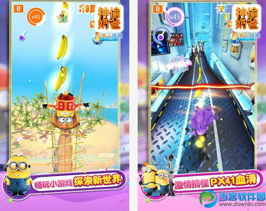 3、不同的挑战角色需要完成不同的任务,你可以在赛道上解锁更多不同的跑酷玩法。 游戏优势: 1、神秘的区域,独特的反派战斗以及惊艳的道具 2、创意十足的原创游戏 3、参与多种多样的奖励制游戏 4、驾驶格鲁的火箭开始你的亡命之旅 5、骑着毛毛独角兽收集香蕉 6、和好友一起来享受乐趣!在飞奔之中看看各自拿到的最佳分数吧,向他们发送有趣的小黄人嘲讽和挑战,让他们知道,谁才配赢得“年度小黄人”的称号! |