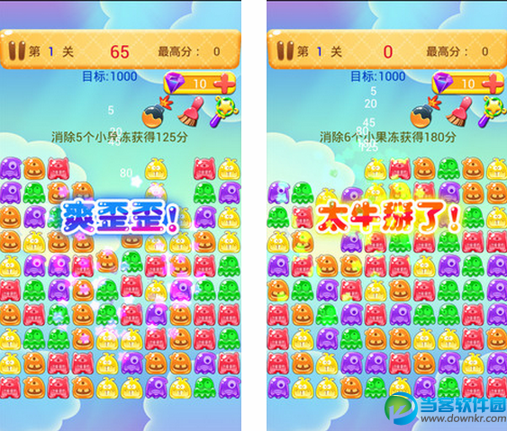 消灭星星3果冻版修改版是一个很锻炼脑力的游戏,和传统的消除类游戏不同,玩家不能再无脑的乱点通关,每一关都会要求达到一定的分数才能通关,否则乱点之后,分数不够,而且也没有可消除的对象就会GAME OVER了,所以说要尽量多得些分数,多个一起消除分数会在基础的分数上进行叠加。 游戏特色: 1、游戏除经典玩法外,其中可爱超萌的果冻会让你感受视觉上的盛宴,也能体游戏的愉悦。 2、新增暴爽3种道具的使用(炸弹,颜料,魔法棒,需要使用钻石)。 3、还有不同以往的双击操作消除,只需要单击即可,减少点击的劳累, 4、经典玩法难易适中,同时具有多种过度特效,消除效果华丽, 5、每个小果冻消除时候还会变幻表情哦,体验感非常强烈! 6、色彩非常绚丽,超萌超可爱哦,等待你去消灭! |