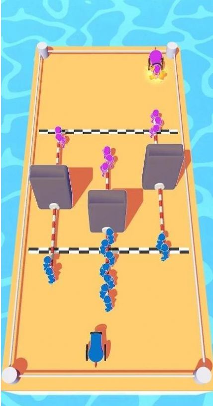 1、游戏的玩法比较新颖,点击向石板后面释放拔河的队友; 2、发射速度不变,但是可以通过左右滑动屏幕选择发射位置; 3、如果将三块石板拉到终点,这就要看你使用什么样的策略。