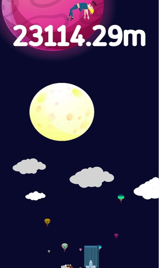我要上月球游戏是一款非常有趣的挑战小游戏。将角色向上抛,向着月球进发,不断加大力度提升角色向上跳跃的公里数,通过有技巧的点击屏幕,不断创造新的跳跃成绩,操作上基本不会有什么难度,各种玩法挑战十分精彩,不断超越自己的成绩,朝着月球的高度跳跃吧!