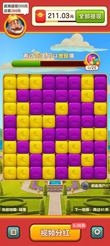 国王爱消消官方正版是一款有着丰富红包可以领取的赚钱游戏,玩家需要通过消除相同颜色的方块来完成目标,每个关卡中都有不同的任务,例如消除指定数量的方块或在限定时间内完成目标,不同的关卡难度也不同,需要玩家动脑筋思考如何最快的达成目标,拥有抢红包系统,玩家可以通过完成任务得到游戏币。 游戏特色:
