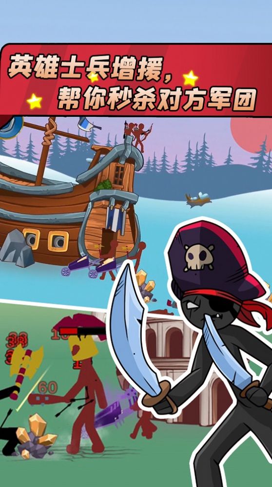 火柴人战争部落生存游戏是一款能够给玩家带来激烈火柴人战斗对决的策略游戏,在这个卡通世界里可以召唤不同的火柴人英雄进行冒险,让你能够在一场场的战斗之中顺利的击败敌人,完成更多的挑战任务,解锁更多有趣的内容,体验激烈的战斗对决。