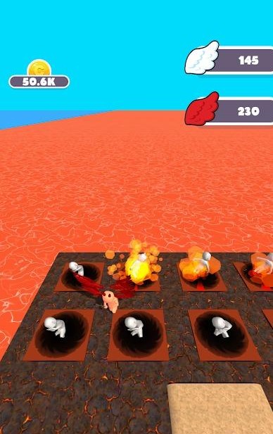 1、摇杆操控角色移动,刚开始游戏会有新手提示,利用初始金币解锁耕种地; 2、就会有一具西方风格的棺材从土中钻出来,并不断的冒出灵魂; 3、在天使和恶魔的地界,使用祷告或燃烧的方式献祭,并制作出天使或恶魔的翅膀。