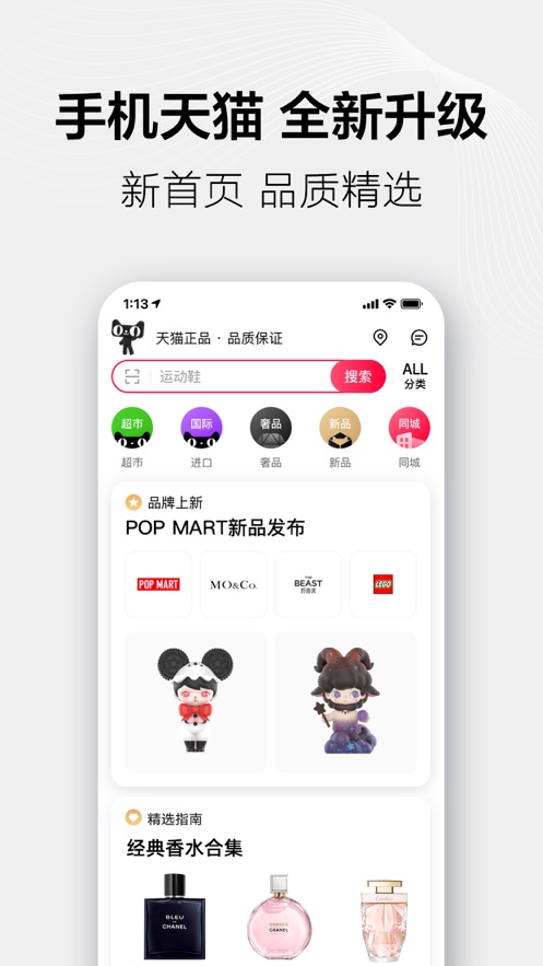 v11.3.0 喵,理想生活上天猫~12月12日让你把2021年购物清单一应补齐,不留遗憾到明年! 正品行货超多补贴随时下单不纠结,安心宅家享尽大牌好货极速上门~ 【天猫国际】全球好物尽情发现!全球划算GO,充值送百元! 【天猫超市】官方自营,好货低价第二件0元,先充卡再购物折上折! 【天猫奢品】全球时尚购物专业推荐,官方旗舰放心买! 【天猫新品】新品牌、新潮科技官方推荐,尝鲜等不了! 【天猫福利】新人专享福利等你拿,388元超值礼包带回家!