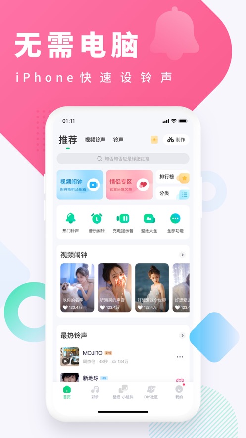酷狗铃声手机版为你的手机注入清新明亮的铃声魅力!拥有丰富的热门铃声资源,让你自由选择最喜欢的来电铃声。不仅如此,还提供铃声剪辑和制作功能,让你创造属于自己的独特铃声。视频铃声、视频闹钟、小组件等多样功能,完美满足你的需求。快来下载最新版酷狗铃声APP,让手机充满清新韵味! 软件介绍: 【HOT】动态铃声上线啦!!好玩又新颖的动态铃声,可以让喜欢的视觉形象和铃声出现在你的桌面上,粉丝们还可以自定义成自己的爱豆哦~ 软件功能: 无需连接电脑,手机快速换铃声:酷狗铃声APP支持直接在手机上更换铃声,无需复杂的连接步骤,只需简单几步,即可快速设置,100%成功。 界面简洁精美,浪漫生活的好帮手:酷狗铃声APP的界面设计简洁美观,操作简便,同时还可以设置纪念日和倒数日,为你的浪漫生活增添一份惊喜。 精美图片,接电话更有个性:你可以选择精美的图片作为来电背景,让每次接电话都成为个性展示的时刻,给你的手机来电增添一份独特的魅力。 DIY个性铃声:酷狗铃声APP提供了裁剪、串烧和视频背景音等功能,让你可以轻松提取你喜爱的音频片段,自由组合,创造属于你的个性铃声。 软件特点: 随时随地设置专属来电铃声:不论你身处何地,只需打开酷狗铃声APP,即可轻松设置个性化的来电铃声,让你的手机铃声别具一格。 海量铃声自由选择:酷狗铃声APP拥有丰富多样的铃声资源,从经典到流行,从摇滚到嘻哈,你可以自由选择符合自己喜好的铃声,并根据需要进行裁剪和设计。 多功能扩展:除了来电铃声,酷狗铃声APP还提供了其他实用的功能,如充电提示音、锁屏小组件和视频闹钟,让你的手机功能更加丰富多样。 个性铃声设置:酷狗铃声APP为用户提供了独特的个性化设置,让你的手机铃声与众不同,展现你的个性与创意。 软件亮点: 众多DIY达人的作品:酷狗铃声APP聚集了许多有才华的DIY达人,他们创作出各种风格的个性视频和音频,为用户提供更多选择和享受。 酷狗海量铃声和视频库:该APP拥有丰富的铃声和视频库,涵盖了各种流行、搞怪、影视、动漫、短信、闹钟和DJ等类别。无论你喜欢什么样的铃声和视频,酷狗铃声APP都能满足你的需求,让你随心所欲地享受多样化的内容。 小编评测: 无论你喜欢什么风格的铃声和视频,都能在这个APP中找到,让你的手机成为独一无二的个性展示。赶快下载酷狗铃声APP,让你的手机与众不同! 更新日志: v6.8.5 1、新春小组件「龙」重登场!惊喜互动等你来解锁~ 2、『酷狗铃声x熊非熊』携全新春联组件&来电皮肤,给您拜年啦! 3、热门内容小组件上线,随时get新鲜有趣的铃声壁纸! v6.7.0 修复了一些问题,优化用户体验。 v6.5.0 1、超清动态壁纸上线!给你更惊艳的视觉体验。 2、修复线上问题,优化体验。 v6.3.5 1、修复线上问题,优化体验。 v6.1.0 1、创作者开放打赏功能啦! 2、支持上传精美图片; 3、修复线上问题,优化体验。