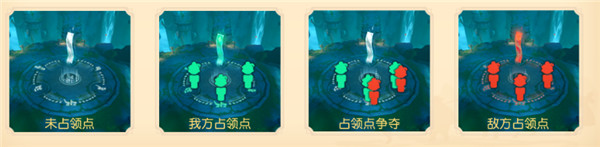 2、积分获取——通过占领平台获取积分,也可在掌心平台搬运如来符咒获取积分。(本方玩家处于平台中心区域且区域内没有地方玩家即可占领平台)