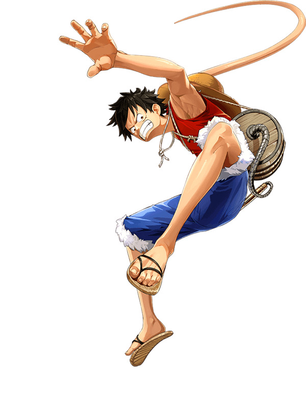 人物介绍:人称“草帽小子”路飞。梦想是找到世界第一的宝藏、成为航海王!!小时候吃下橡皮之果变成了橡皮人,普通的打击和电击对他来说都是无效的。通过橡皮的反作用力打出的一击,力量和速度都十分超群! !是个大胃王,非常贪吃,尤其喜欢吃肉,经常偷吃山智放在梅利号冰箱里的食物。平时偶尔还会哼一些奇怪的歌。虽然经常会犯傻,但实际是一位心系同伴的好船长,深得伙伴们的信任。